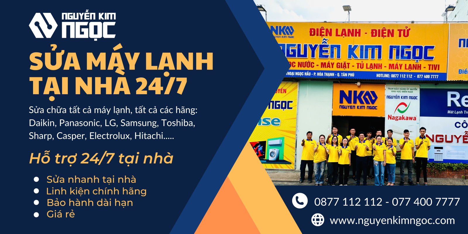 Nguyễn Kim Ngọc nhận sửa chữa tất cả máy lạnh, tất cả các hãng, tất cả các model, tất cả các đời máy trên thị trường hiện nay… và mọi dòng Inverter – Non-Inverter.